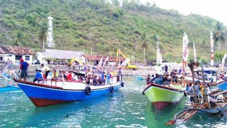 Meski sedekah laut dimulai sekitar pukul 15.15 WIB, ratusan warga sudah menaiki kapal yang akan mengiringi pelarungan sesaji sejak pukul 12.00 WIB.