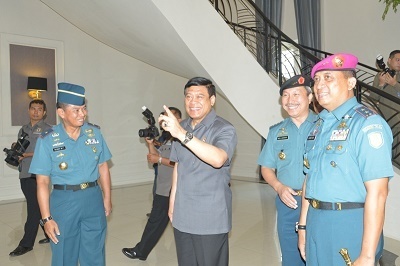 Dalam kesempatan itu, Menkopolhukam didampingi Plt. Kabakamla Laksdya TNI Dr. D.A. Mamahit, M.Sc., Aspers KSAL Laksamana Muda TNI Djoko Teguh Wahojo, dan Dankobangdikal Laksamana Muda TNI I.N.G.N Ary Atmaja, S.E. dan sejumlah pejabat TNI AL lainnya. (pen/AAL)