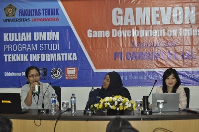Sekadar informasi dalam kuliah umum “Gamevon: Game Development on Industries” dihadirkan dua pemateri, yaitu Yovita Susanti dan Ingga Novitasari. Keduanya merupakan Recruitment Lead PT. Gameloft Indonesia. Kuliah umum yang dimulai dari Pukul 09.00 hingga 12.00 WIB tersebut diikuti 150 peserta. Tak hanya dari UJB, peserta juga berasal dari berbagai Perguruan Tinggi di Kota Yogyakarta.(rd)