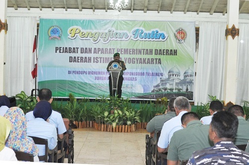 YOGYAKARTA –Korem 072/Pamungkas menggelar pengajian rutin pejabat dan aparat pemerintah Daerah Istimewa Yogyakarta (DIY) Bulan Maret, di Pendopo Museum Sasana Wiratama Monumen Diponegoro, Rabu (07/03/18).