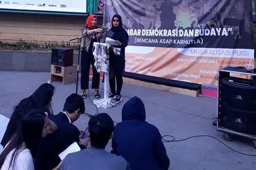 Mimbar Demokrasi dan Budaya dengan tema “Bencana Asap Karhutla” yang dihelat DPP Gemura, kemarin menggandeng sejumlah tokoh seniman dan budayawan. Antara lain, Datuk Asrizal Nur, Penyair Romantik Irmansyah, penulis dan Penyair Bunda Martha Sinaga, teater anak zaman. Acara juga dihadiri forum pelajar mahasiswa daerah yang terdampak kabut asap yang ada di Jakarta. (pr/kt1)