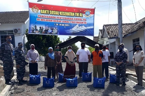 YOGYAKARTA – Pangkalan TNI Angkatan Laut (Lanal) Yogyakarta, Lantamal V Koarmada II secara serentak melaksanakan Bakti Sosial (Baksos) Kesehatan TNI AL untuk Pencegahan Penyebaran Covid-19, selama dua hari pada Senin dan Selasa (28-29/07/20).