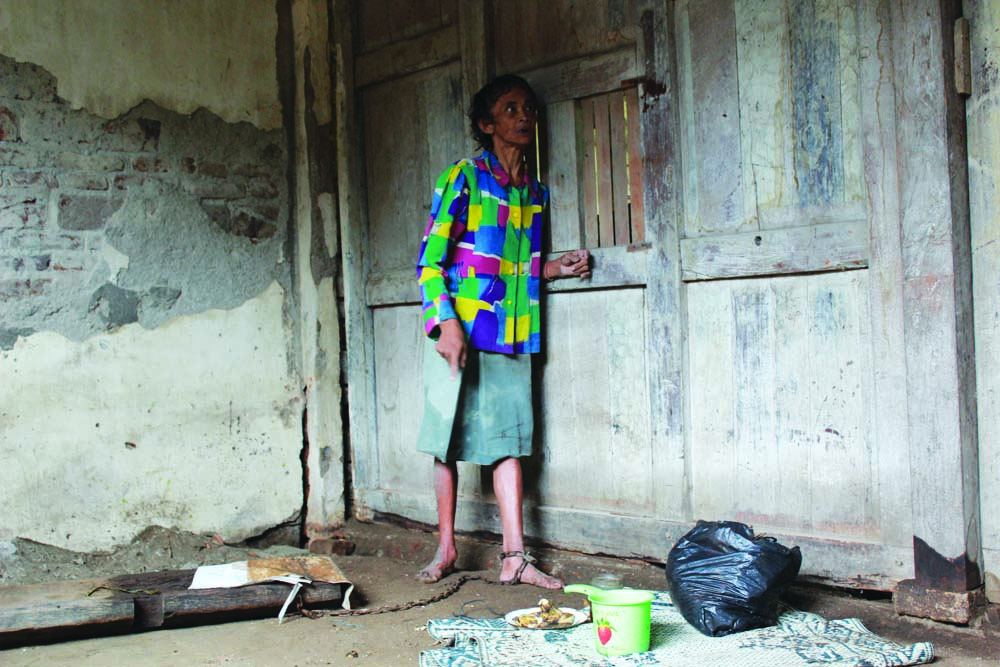 Dengan terpaksa, ia memasung istrinya, Parinah (55), yang mengidap gangguan jiwa, karena biaya berobat kian jauh dari jangkauan. Hampir setahun sudah parinah hidup dengan kondisi kaki yang terikat rantai di sebuah bekas bangunan rumah kayu, yang tidak terpakai lagi.