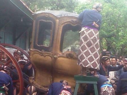 Salah satu pnengunjung dari Magelang, Sutris (53) mengaku ikut berebut untuk mendapatkan air dan kain kafan yang diugnakan untuk menjamas kereta yang pernah digunakan oleh HB IV.