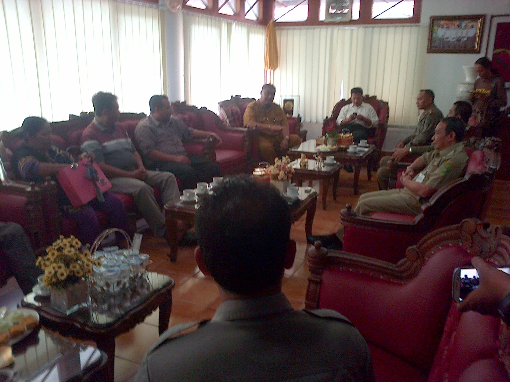 Berkenaan dengan kesibukan Bupati Bantul, rombongan diterima oleh Sekretaris Daerah Bantul, Drs. Riyantono, MSi, didampingi Kepala Satuan Polisi Pamong Praja Bantul, Kandiawan, dan Kasat Intel Polres Bantul AKP Supardi.