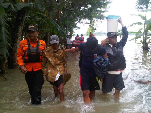 PURWOREJO – Badan SAR Nasional beserta tim SAR lainnya hingga malam ini, Minggu (22/12/2013) pukul 20.00 masih melakukan evakuasi terhadap sekitar 20 warga di desa Bendungan, kecamatan Grabag, Kabupaten Purworejo. Kepala Kantor SAR Semarang Agus Haryono mengatakan, pihaknya mengevakuasi sekitar 20 warga yang sebelumnya tetap bertahan di desanya. Namun, karena kondisi ketinggian air yang semakin bertambah membuat warga minta dievakuasi tim SAR.