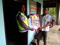 GUNUNGKIDUL – Berbagai upaya dilakukan pihak kepolisian untuk memberikan himbauan keamanan dan ketertiban masyarakat (Kamtibmas). Salah satunya dengan cara membagikan kalender tahun 2014 berisi berbagai himbauan kamtibmas oleh jajaran Polsek Playen kepada masyarakat secara langsung ke rumah, maupun di jalan-jalan Kamis (2/1/2014).