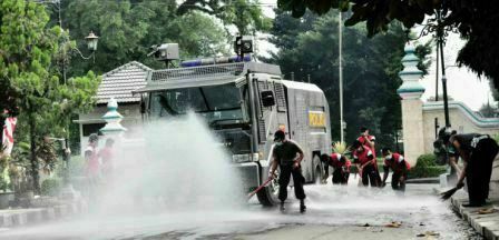Pantauan Jogjakartanews.com sejumlah anggota Kodim 0730 membersihkan ruas jalan depan lapangan kodim hingga sekitar RSUD Wonosari, sekitar pukul 08.00 Wib. Dengan menggunakan truk tangki anggota TNI menyemprot abu vulkanik dampak letusan Gunung Kelud dan sebagian menyapu bekas semprotan.