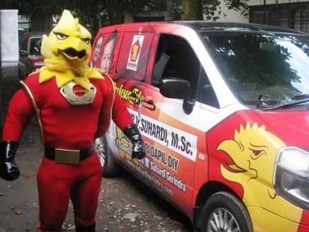 YOGYAKARTA – Dalam rangka mengkampanyekan diri, Ketua Umum DPP Gerindra, Prof. DR.Ir. Suhardi M.Sc meluncurkan maskot yang diberi nama Mas Garuda di Joglo Suhardi. Mas Garuda adalah superhero pembela kebenaran dan pemberantas kejahatan yang mempunyai sosok seperti burung Garuda Pancasila.