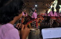 “Kesenian itu sejenis jathilan dengan menggunakan kostum khas Punokawan (dalam wayang; Gareng, Petruk, Bagong, Semar, dan teman-temannya),” tambah Sukardi.