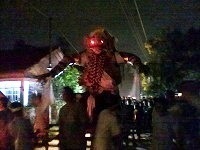SLEMAN – Menjelang peringatan Hari raya Nyepi yang jatuh pada Senin (31/03/2014), umat Hindu di seluruh Indonesia mengadakan peringatan Tahun Baru Saka 1936. Termasuk halnya umat Hindu di Kampung Dero, Desa Wedomartani, Ngemplak, Sleman. Umat Hindu di Kampung Dero tersebut mengadakan upacara peringaran Tahun Baru Saka 1936 dengan mengarak Ogoh-ogoh dan Gunungan mengelilingi Kampung Dero yang diikuti pengikut umat Hindu setempat.