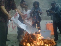 YOGYAKARTA – KPU Kota Yogyakarta memusnahkan ribuan surat suara yang rusak dan tidak terpakai dengan cara membakar. Pemusnahan dilakukan di Gudang Pengelolaan KPU Kota Yogyakarta, Kotagede, Selasa (8/4/2014).