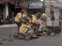 Jumakir melanjutkan bahwa ada 5 orang pekerja yang memperbaiki jalan yang berlubang itu. “Baru hari ini kami memperbaikinya,” ujar warga Kelurahan Bimomartani, Kecamatan Ngemplak, Kabupaten Sleman dan mengaku baru 4 tahun bekerja sebagai Pekerja Harian Lepas (PHL) pada Din as Pekerjaan Umum (DPU) Kabupaten Sleman, itu.