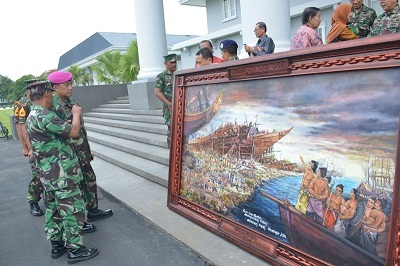 “Lukisan yang merupakan karya dari seniman lukis Mohamad Rochani ini menggambarkan tentang situasi pada jaman kerajaan Majapahit dengan kekuatan armada lautnya yang dipimpin Maha patih Gajah Mada,” ungkap Laksamana (Pur) Syaifulah, dalam siaran pers resmi AAL yang diterima jogjakartanews.com, Rabu (03/12/2014).