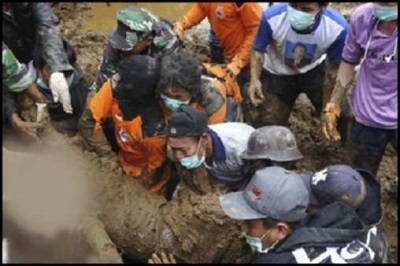 Lalu, setelah ke-empat korban berhasil terevakuasi, kami menyemprotka air ke sekitar badn mobi avanza yang masih baru itu. Ternyata di bawah mobil terlihat ada satu korban lagi. Kami berusaha keras sekali untuk bisa mengevakuasi korban itu. “Kami terus menggali dan menyemprotkan air ke sekitar mobil menggunakan alkon penyemprot air. Sekaligus mencari, siapa tau ada korban lagi,” papar Nyoto.