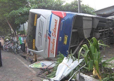 Bus yang memang terkenal dengan sopirnya yang ugal-ugalan itu mengalami kecelakaan di Jl Raya Ngawi – Solo, Desa Jenggrik, Kecamatan Kedunggalar, Kabupaten Ngawi. “Ada seorang korban yang belum bisa dievakuasi karena terjepit bodi bus,” tukas salah saorang polantas.