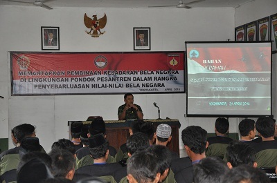 Kegiatan yang diikuti sebanyak 100 orang santri itu dan dibuka oleh Kolonel Kav Iman Rokhani dari Kemhan RI yang juga bertindak sebagai inspektur upacara. Satri-santri tersebut berasal dari enam Pondok Pesantren (PP) yang ada di DIY yaitu PP Anurr Kabupaten Gunung Kidul, PP Nurul Umah Kota Gedeh Kab.Bantul, PP Albaroqah Yogyakarta, PP Anur Merukin Sewon Bantul, PP Nurul Haromain Kab.Kulonprogo, dan PP Asalam kab.Sleman.