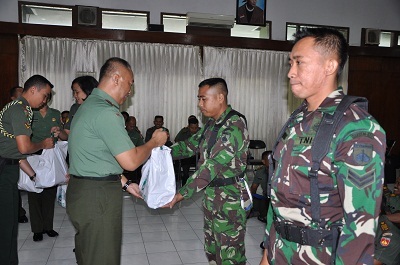 YOGYAKARTA – Komandan Korem 072/Pamungkas Brigjen TNI Stephanus Tri Mulyono memberikan pembekalan kepada seluruh prajurit TNI dan PNS jajaran Korem 072/pamungkas di Gedung Serbaguna, Senin (13/07/2015). Dalam pemberian bekal tersebut, Danrem tidak lupa memberikan pengarahan jajarannya agar seluruh Prajurit Jajaran Korem 072/Pamungkas untuk selalu menjaga keharmonisan dan hindari kesalapahaman dengan Polri dan masyarakat.