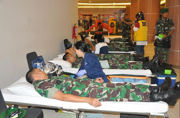 YOGYAKARTA – Memperingati Hari Pahlawan, ratusan prajurit dari Komando Resort Militer 072/Pamungkas (Korem 072/Pmk) menyumbangkan darahnya untuk menolong sesama Rabu (11/11/2015). Kegiatan donor darah bekerjasama dengan Lions Club tersebut dilaksanakan di Lippo Plaza Jl. Laksda Adisucipto Yogyakarta.