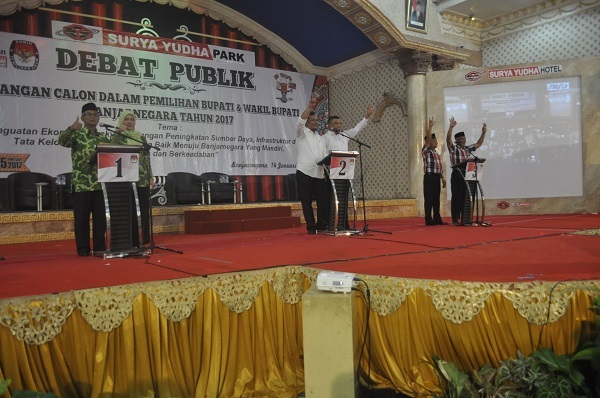 BANJARNEGARA – Persoalan infrastruktur jalan menjadi tema andalan para kandidat Calon Bupati dan Calon Wakil Bupati (Cabub-Cawabub) Banjarnegara, dalam debat kandidat yang diselenggarakan Komisi Pemilihan Umum (KPU) Banjarnegara, di Surya Yudha Park, Sabtu (14/01/2016) siang. Masing-masing kandidat menawarkan solusi yang cukup bervariatif terkait persoalan yang banyak dikeluhkan masyarakat tersebut.