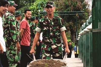 “Sebagai Danramil saya tidak mau hanya duduk dibelakang meja dan hanya terima laporan pelaksanaan, karena tidak sesuai dengan semangat dan tujuan dari TMMD itu sendiri. Saya merasa wajib turun ke lapangan untuk bersama sama berkeringat, berpanas-panasan bersama anggota dan warga,” tutur Danramil 06/Mergangsan di sela sela membantu pengerjaan talud.