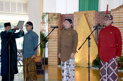 Pelantikan dan pengambilan sumpah oleh Gubernur DIY, Sri Sultan Hamengku Buwono X dengan disaksikan oleh Kepala Disperindagkop DIY, Ir Riyadi Ida Bagus Salyo Subali, MM dan Staf Ahli Gubernur DIY Bidang Pemerintah Hendar Susilowati SH beserta sejumlah tamu undangan.