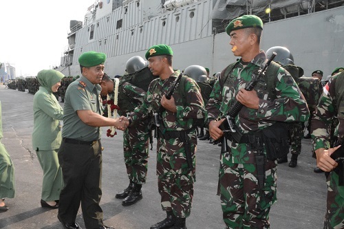 YOGYAKARTA – Prajurit Satuan Tugas (Satgas) Yonif 403/Wirasada Pratista yang telah menjalankan Tugas Operasi Pengamanan Perbatasan RI-Malaysia di wilayah Kalimantan Timur dan Kalimantan utara tiba di Dermaga Pelabuhan Tanjung Emas, Semarang, Sabtu (04/11/2017). Kedatangan Prajurit yang menggunakan Kapal KRI Teluk Manado tersebut disambut dengan upacara yang dipimpin Danrem 072/Pamungkas Brigjen TNI Fajar Setyawan S.I.P.