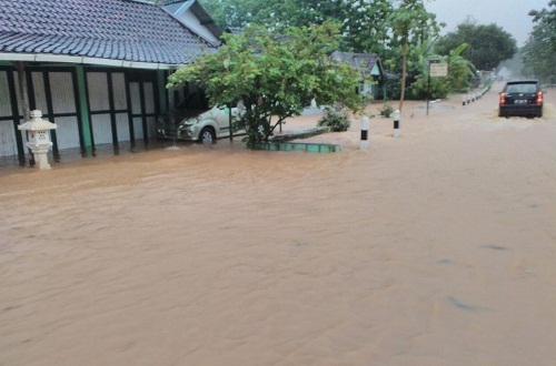 “Saat ini air sampai lapangan voli bunder atau selatan jalan,” kata Agus warga setempat.