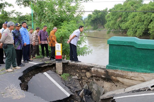 Selanjutnya, Gubernur DIY mengunjungi wilayah Desa Sayegan, Kecamatan Sayegan, Kabupaten Sleman dan Desa Barongan, Kecamatan Jetis, Kabupaten Bantul. Di dua lokasi tersebut, Sri Sultan beserta rombongan meinjau infrastruktur jembatan yang rusak akibat tergerus banjir. (kt1)