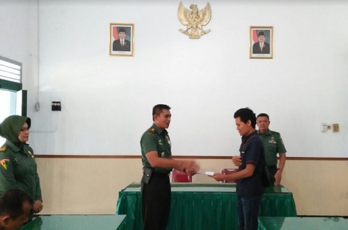 BANTUL – Komandan Kodim (Dandim) 0729/Bantul Letkol Inf Yuswanto menyerahkan santunan kematian dari PT. ASABRI kepada ahli waris almarhum Sersan Dua (Serda) Sarjono di Makodim 0729/Bantul, Rabu (31/01/2018).