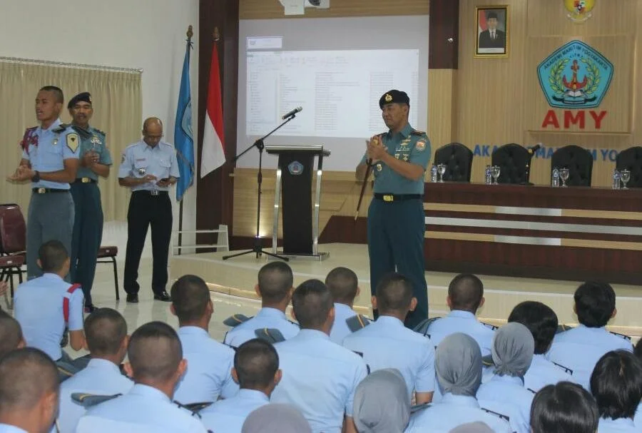 YOGYAKARTA – Pangkalan TNI Angkatan Laut (Lanal) Yogyakarta menyelenggarakan Sosialisasi Bela Negara dan Promosi TNI Angkatan Laut kepada taruna taruni Akademi Maritim Yogyakarta (AMY), Jumat (13/07/2018) pagi, di kampus AMY, Jl. Magelang, Mesan, Sinduadi, Mlati, Sleman.