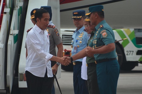 Komandan Lanal (Danlanal) Yogyakarta Kolonel Laut (P) Arya Delano, S.E, M.Pd turut langusng menyambut kedatangan Presiden yang didampingi Panglima TNI Marsekal TNI Hadi Tjahyanto dan pejabat tinggi negara lainnya di Lanud Adi Sucipyo Yogyakarta.