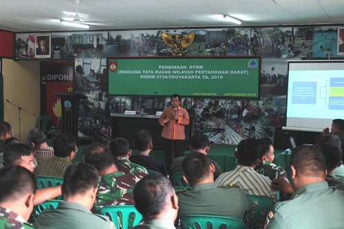 Dandim 0734/Yogyakarta, Letkol Inf Bram Pramudia, SE dalam sambutannya yang diwakili oleh Danramil 06/Mergangsan Mayor Inf Sutrisno mengatakan, tujuan kegiatan adalah untuk memberikan petunjuk atau gambaran secara umum kepada satuan jajaran Kodim 0734/Yogyakarta dalam melaksanakan Tata Ruang Wilayah Pertahanan Darat di wilayah, agar berjalan tertib, aman, lancar, serta mencapai hasil yang optimal.
