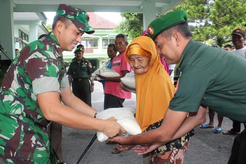 BANTUL – Kodim 0729/Bantul bagikan zakat fitrah kepada masyarakat fakir miskin di serambi Makodim, Senin (03/06/2019).