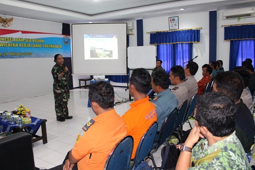 YOGYAKARTA – Pusat Hidrografi dan Oseanografi TNI Angkatan Laut (Pushidrosal) melaksanakan sosialisasi terkait informasi kelautan berbasis internet dengan aplikasi Indonesea dan Sea Vision di Markas Komando Pangkalan TNI AL (Makolanal) Yogyakarta, Kamis (24/09/2019).
