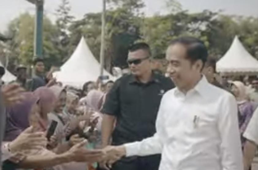 Presiden juga tampak menyempatkan diri menyapa masyarakat yang berkumpul di seberang jembatan menyambut kehadirannya dengan penuh antusias.