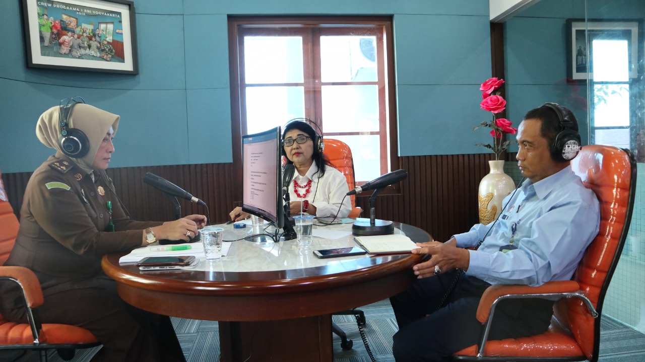 YOGYAKARTA – Radio Republik Indonesia (RRI) Pro 1 FM gandeng Balai Pemasyarakatan Kelas I Yogyakarta(Bapas Jogja) dalam dialog aktual membahas tentang “Cara Mengatasi Aksi Klithih di Yogyakarta” bersama dengan Kejaksaan Tinggi Yogyakarta, Selasa(14/01/2020).