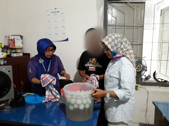 “Kegiatan yang dilaksanakan sederhana dengan dana minim bisa melibatkan hanya satu atau dua orang klien saja seperti pelatihan telur asin, pembuatan telur asin bisa dipanen sekitar dua minggu sehingga hasilnya bisa langsung dinikmati dan dijual ke konsumen, kebetulan kami dibagian bimbingan kerja klien anak , untuk kegiatan kami ambilkan sesuai jadwal mereka setelah pulang sekolah dan sebelumnya berkoordinasi dengan Pembimbing Kemasyarakatan dari masing-masing klien agar mudah mengetahui jadwal klien anak” ucapnya.