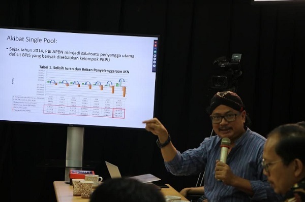 Menurutnya, saat ini telah terjadi sistem kebebasan yang populis. Sekelompok rakyat sangat diuntungkan dengan kebijakan JKN, sementara sekelompok lain dirugikan yakni PBI APBN. Tak hanya itu, kebijakan saat ini dengan sistem single pool tidak mencerminkan keadilan sosial bagi seluruh rakyat. Kemampuan fiskal pemerintah pusat juga sulit menopang kebijakan JKN.