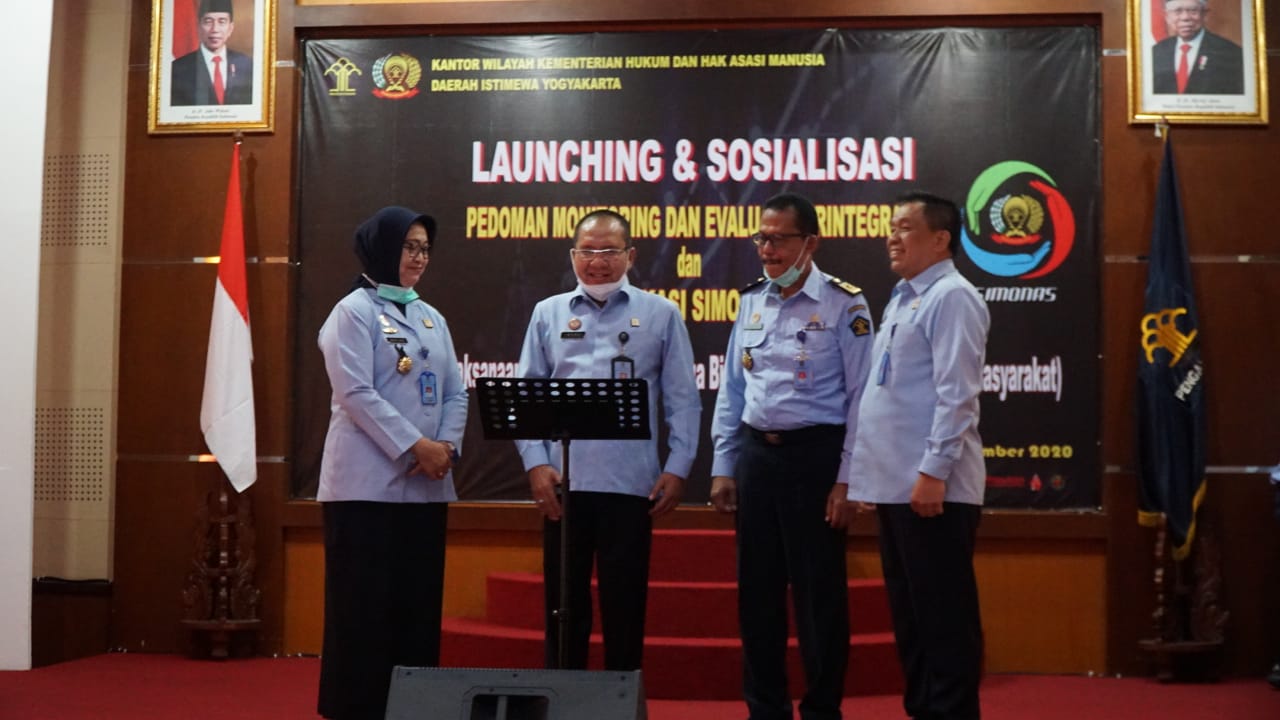 YOGYAKARTA – Kantor Wilayah (Kanwil) Kementerian Hukum dan Hak Asasi Manusia (Kemenkumham) Daerah Istimewa Yogyakarta melaksanakan kegiatan peluncuran (launching) dan Sosialisasi aplikasi SIMONAS dan Sidatin OY pada Selasa (30/11/20).