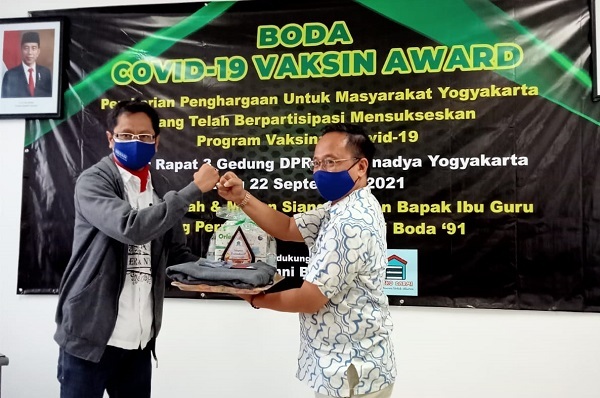 Perwakilan Paguyuban Alumni SMA BODA, Cahyo Kartikadiri mengatakan, BODA COVID-19 Vaksin Award diinisiatori salah satu alumni BODA, Thomas Bambang dengan menggandeng DPRD Kota Yogyakarta.