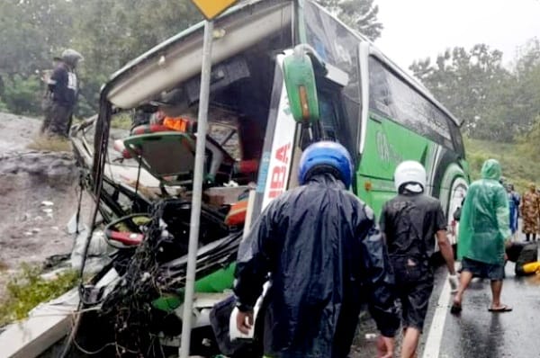 “Laporan anggota di rumah sakit. Penumpang bus ada 42 orang. Yang meninggal dunia 13 orang, lainnya luka-luka,” kata Maryono di lokasi kejadian.