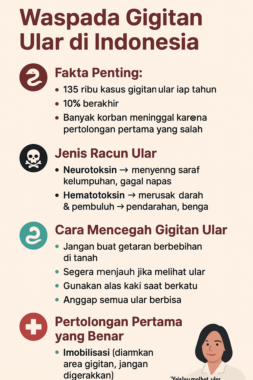 Dengan penanganan yang tepat, risiko kematian akibat gigitan ular bisa ditekan secara signifikan.