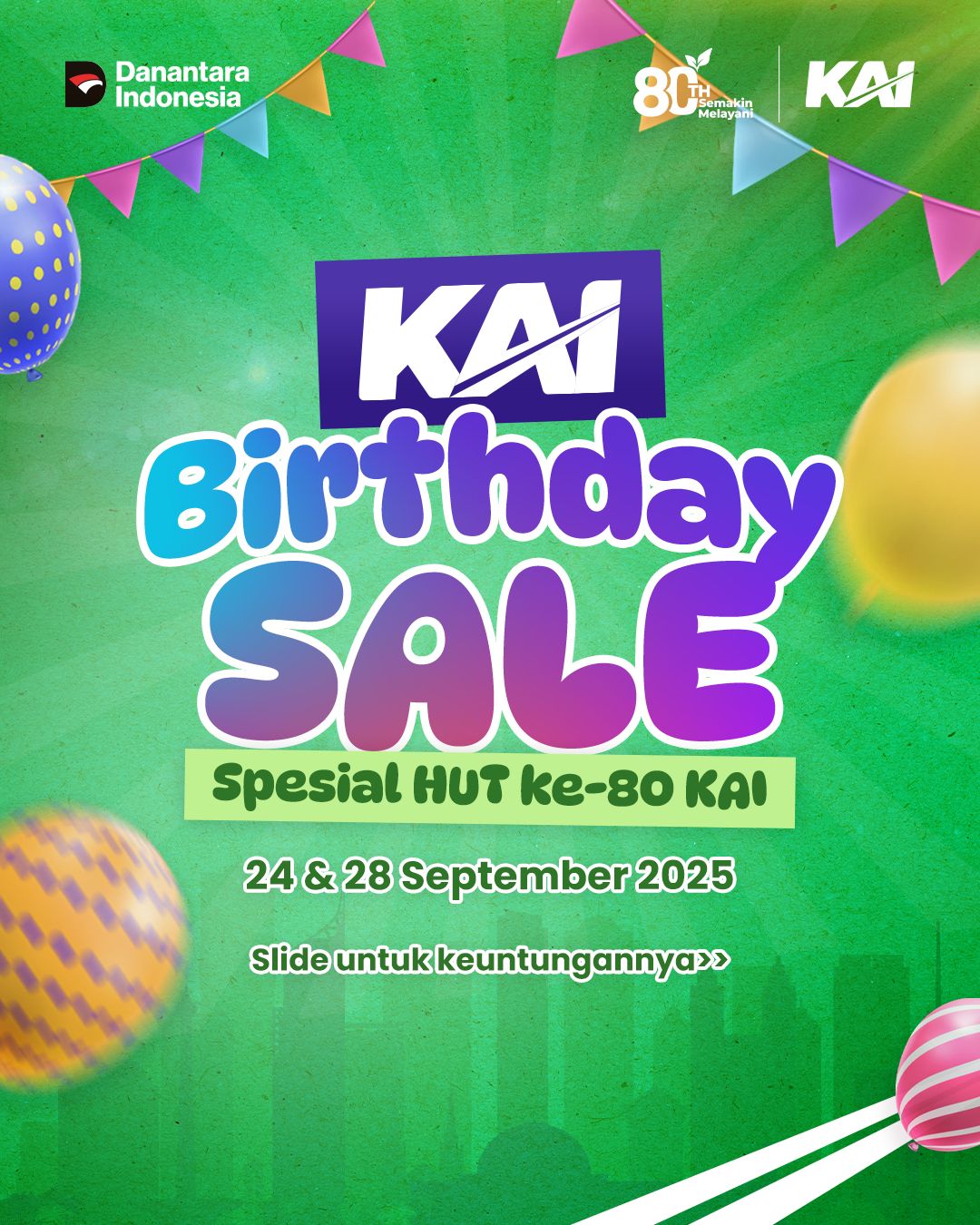 JOGJAKARTANEWS.COM, Yogyakarta – Kabar gembira bagi warga DIY dan sekitarnya! Dalam rangka memperingati HUT ke-80, PT Kereta Api Indonesia (Persero) Daerah Operasi (Daop) 6 Yogyakarta menghadirkan berbagai program promo tiket kereta murah. Masyarakat bisa menikmati perjalanan hemat dengan Flash Sale Rp80.000, Mini Expo Diskon 30%, hingga Birthday Sale dengan potongan harga 20%.